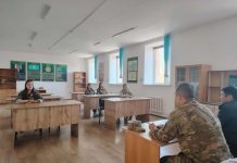 ҚР ҰҚК Шекара қызметінің Жетісу облысы бойынша департаменті Панфилов ауданы бойынша шекара басқармасына қарасты «Қорғас» шекара бөлімшесінің бастығы, капитан Н.Саттарханов Қорғас орта мектебінің оқушыларымен...