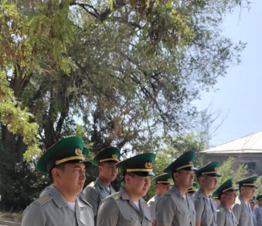 ҚР ҰҚК Шекара қызметі Жетісу облысы бойынша департаменті Панфилов ауданы бойынша шекара басқармасы мен Қорғас шекаралық бақылау басқармасының жеке құрамы Жаркент қаласында Ұлы Жеңістің...