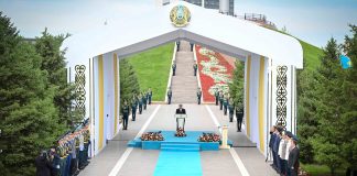 Президент Мемлекеттік ту көтеру рәсіміне қатысты