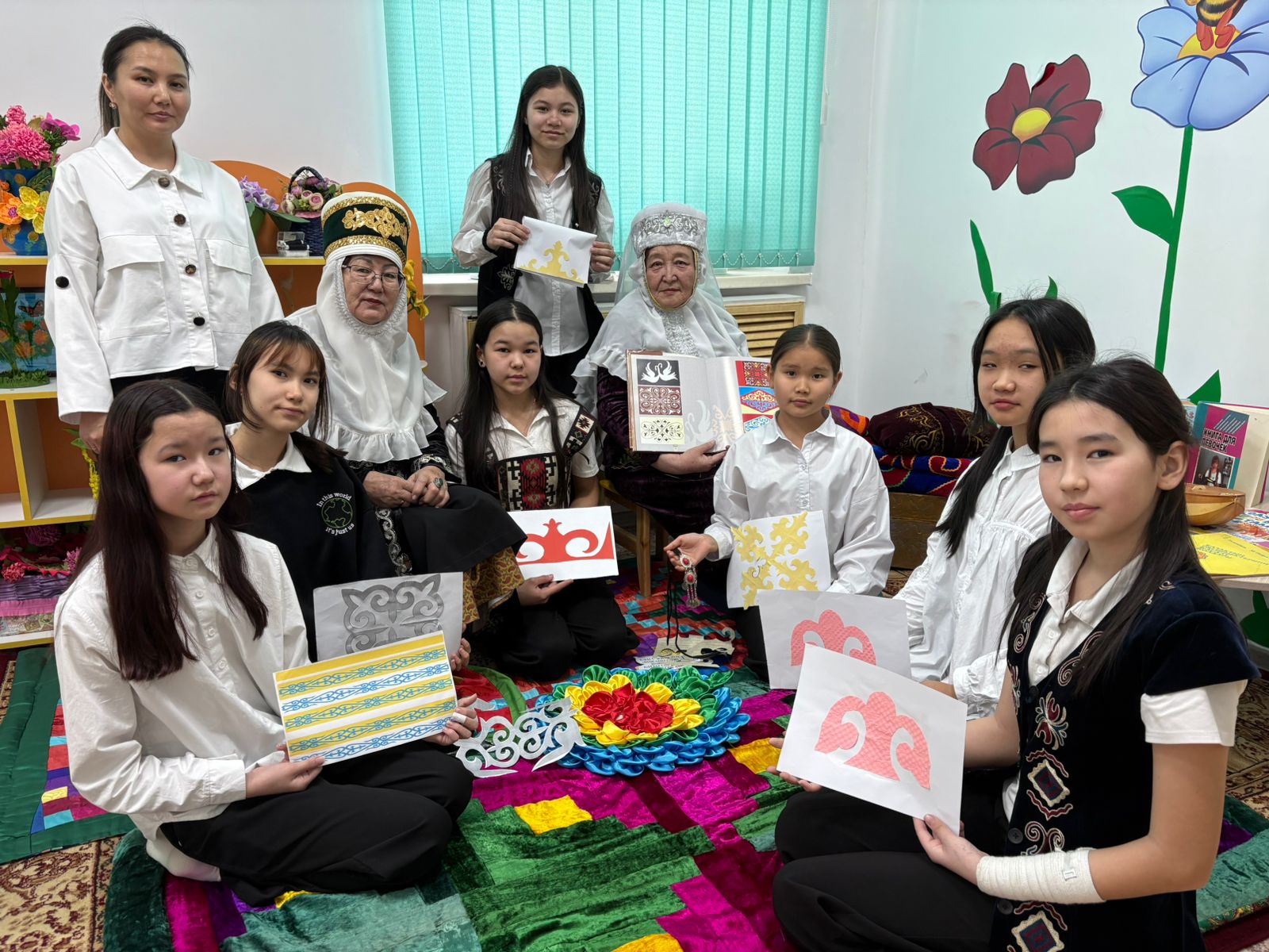 «Шебер қолдар» үйірмесіне 16 оқырман қатысады. Оқушыларға қазақ халқының салт- дәстүрлері мен әдет-ғұрыпының тәрбиелік мәнін ұғындыру, халық өнегесін үйрету, ою-өрнекпен жұмыс істеудің оңай тәсілін таба білу мақсатында «Қазақтың ою-өрнектері»атты шебер қолдар сабағы өтті. Өскелең ұрпақты ұлттық салт-дәстүр рухында тәрбиелеу аясында,кітапхана қаламыздың әр түрлі ұйымдарымен қарым-қатынаста жұмыс жасайды. Бүгінгі сабаққа, Жетісу облыстық ардагерлер үйінің жанынан ашылған академиялық ардагерлер хорының мүшелері Оңал Дінмұхамедқызы мен Айнагүл Қапасқызы қатысты.