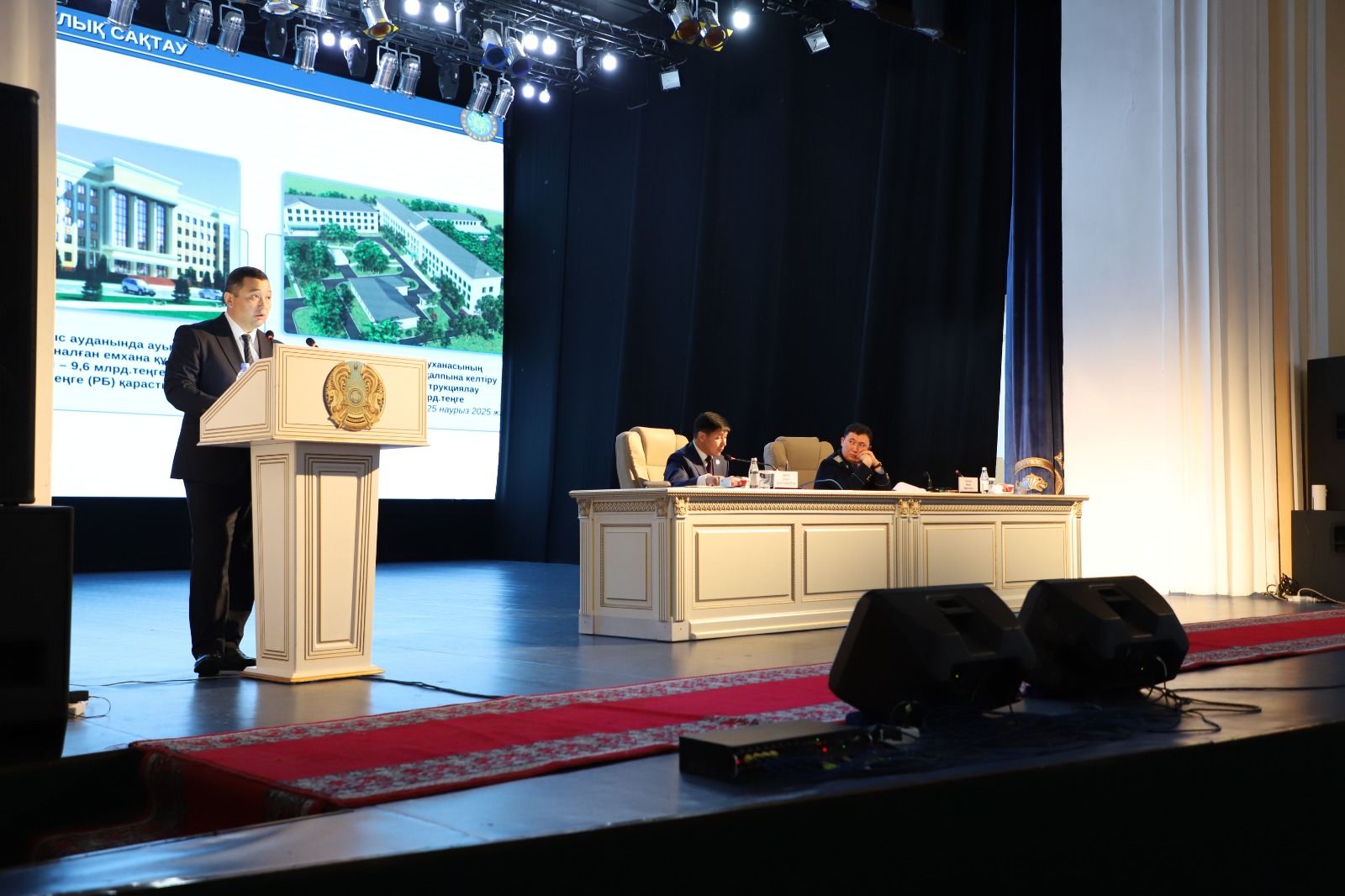 Аталмыш тақырыптарда қала әкімінің орынбасары Рүстем Бершінбеков, Талдықорған қаласы прокурорының орынбасары Адай Құтымов, Талдықорған қаласы полиция басқармасының бастығы Ернар Ширбаев, Талдықорған қаласы бойынша мемлекеттік кірістер басқармасының басшысы Берік Оспанов баяндама жасады. Өткен жылдың қорытындысы бойынша қаланың экономикасының барлық салаларында өсім қамтамасыз етілді. Өнеркәсіпте — 4,3%, бөлшек тауар айналымы –7,0%, ауыл шаруашылығында – 1,2%, құрылыс жұмыстарының көлемі 16,2%-ға ұлғайды, тұрғын үйді пайдалануға беру – 7,2%-ға өсті. Биылғы жылы әдеттегідей тұрғындардың тұрмысын жақсарту мақсатында тұрғын үй құрылысына басты назар аударылмақ. Басты жобалардың бірі – «Қаратал» шағын ауданының оң жағалауында 150 орынға арналған мүмкіндігі шектеулі тұлғаларға арналған оңалту орталығының құрылысын бастау. Сонымен қатар, келіссөздердің нәтижелері бойынша инвесторлар есебінен 200 орынды жаңа онкологиялық орталық салу да қарастырылған. Спорт саласында тағы да жаңа ғимарат көпсалалы спорт кешені бой көтермек. Талдықорған қаласының әкімі Ернат Бәзіл «Облыс әкімінің қолдауымен алдағы екі жылда қаламызды дамытуға ерекше назар аударылатын болады, осылайша 2024 жылмен салыстырғанда ағымдағы жылы қала бюджеті 32,7%-ға өсті. Біздің алдымызда үлкен жауапкершілік тұр, әлі шешілмеген мәселелер мен жүзеге асырылатын жаңа жобалар, міндеттер аз емес. Әр мәселе бойынша нақты шешімдер қабылдау керек және ең бастысы сол шешімдерді іске асыруға тиістіміз» –деді. Ернат Дүйсенбекұлы жол құрылысының сапасы, сонымен қатар коммуналдық нысандардың жұмысы ерекше бақылауды қажет ететінін тілге тиек етіп, жолаушыларды тасымалдау саласы сын көтермейтін жағдайда, атап айтқанда әлеуметтік желіде тұрғындар тарапынан көптеген наразылық туындап келетіндігін мәлімдеді. Сондай-ақ, жол-көлік оқиғаларының өсуіне байланысты құқық бұзушылықтардың алдын алу жөніндегі шараларды күшейту қажеттігін, кәмілеттік жасқа толмаған балалар арасында қылмыстардың алдын алу мақсатында мектептерде тіркелген менторларды тарта отырып оқушылармен, ата-аналар және мұғалімдермен тұрақты түрде кездесулер өткізуді, саяжай тұрғындарын ауыз сумен толығымен қамтамасыз ету, қала аумағында салынатын көше жолдарының сапасына аса мән беру керек екенін қатаң ескертті. «Бізден нақты, үйлесімді және жедел жұмыс істеу талап етіледі» дей келе экономика және бюджеттік жоспарлау, қаржы, кәсіпкерлік, құрылыс, жолаушылар көлігі және автомобиль жолдары бөліміне, төтенше жағдайлар басқармасына тиімді шаралар ұйымдастыру жөнінде нақты тапсырма жүктеді. Құзырлы органдарға қаламыздың әлеуметтік-экономикалық тұрақтылығын қамтамасыз ету үшін жоспардағы жұмыстарды тұрақты бақылауға алу қажеттігін баса айтты.