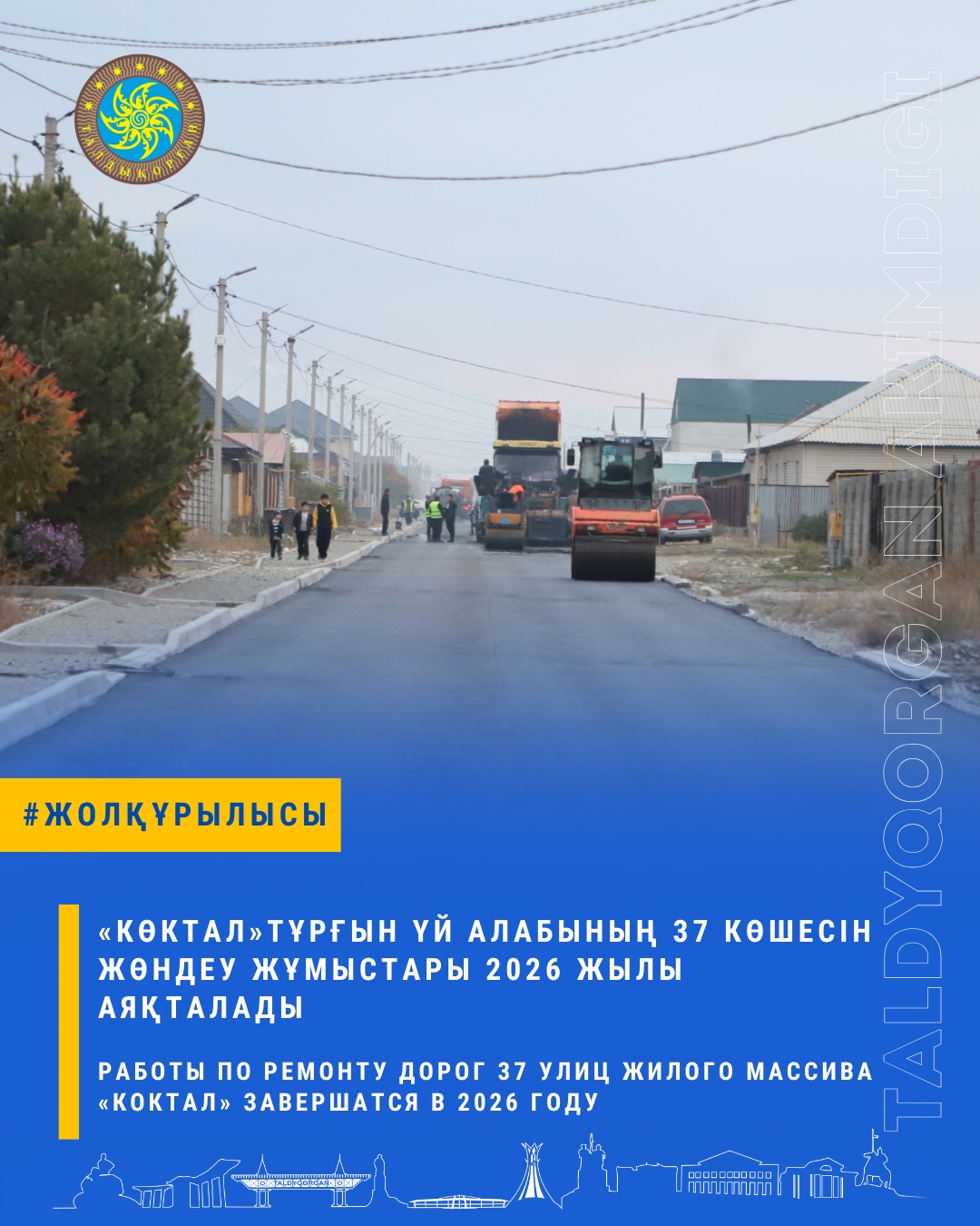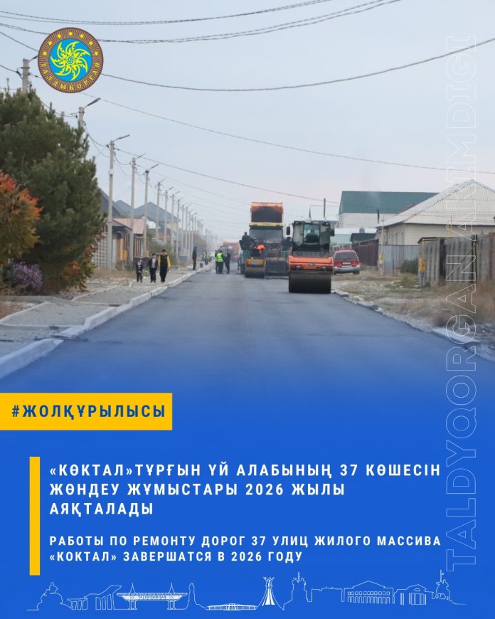 Талдықорған қаласында «Көктал» тұрғын алабының 37 көшесін күрделі жөндеу жұмыстары 2026 жылы толық аяқталмақ. Еркін ауылдық округіне қарасты «Көктал» тұрғын алабы халқының сұранысы негізінде Талдықорған қаласы әкімінің тапсырмасы бойынша 2024 жылы жөндеу жұмыстары басталған болатын.