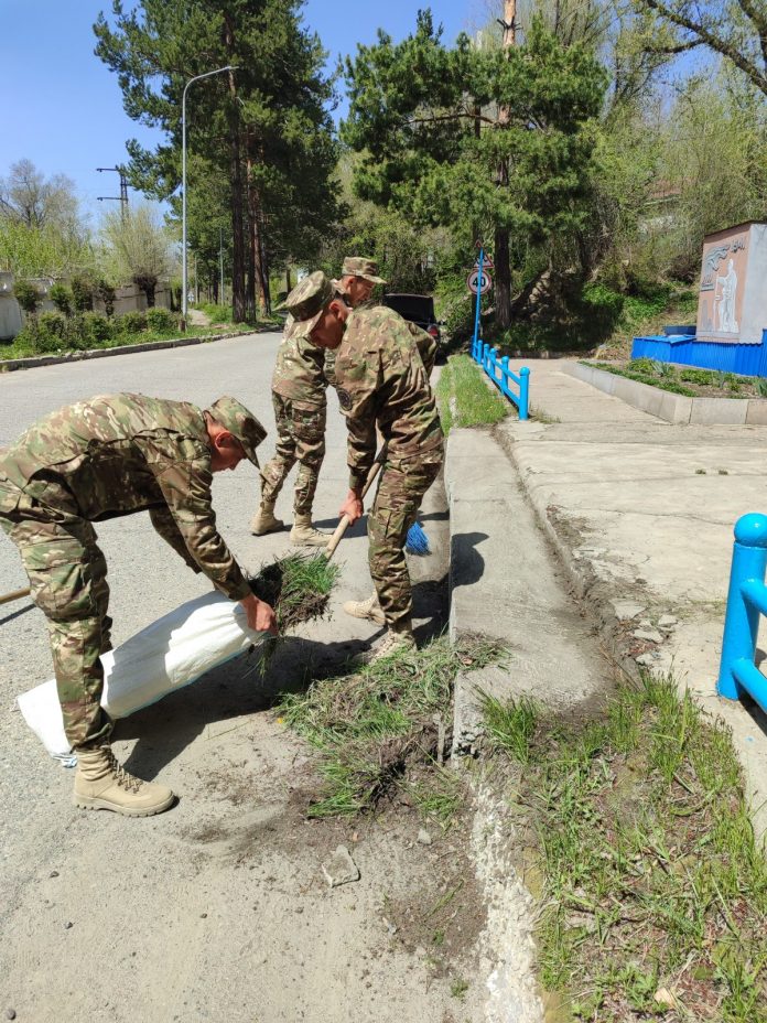 Текелі қаласында орналасқан ҚР ҰҚК Шекара қызметі Жетісу облысы бойынша департаментінің Панфилов ауданы бойынша шекара басқармасының оқу-жаттығу үйрету кавалериялық тобының жеке құрамы Ұлы Отан соғысының құрметіне арналған мемориал аумағында сенбілік өткізді.