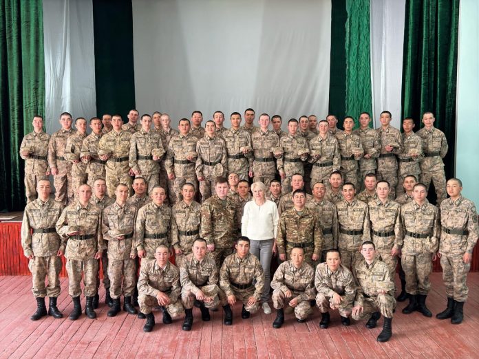 Татьяна Геннадьевна «Көктем-2025» шақырылымының жас жауынгерлермен әскери қызметке қатысты әңгімелесіп, өзара қарым-қатынас тәртібін бұзу мен басқа да құқық бұзушылықтардың алдын алу мәселелеріне тоқталды.