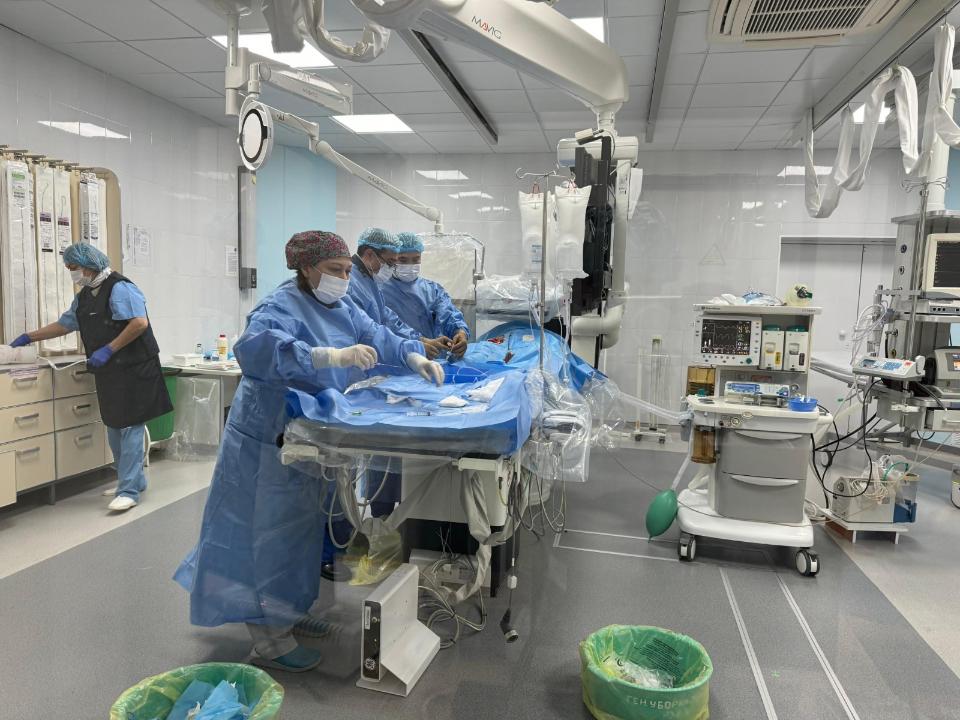 Өмірлік көрсетілімдері бойынша рентгенэндоваскулярлық операция жасалды – аневризма арнайы микрокатушкалармен (микроспиралдармен) толық эмболизацияланды. Операция сәтті өтті, аневризманың бүкіл қуысы сенімді түрде жабылды.