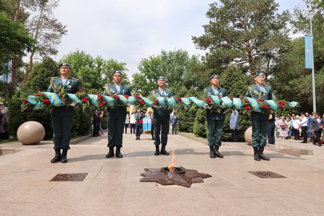 — Ұлы Отан соғысындағы Жеңіске биыл 80 жыл толып отыр. Бұл Жеңіске ата-әкелеріміздің жанқияр ерлігімен қайтпас қайсарлығының, тылдағы аналарымыздың жанкешті еңбегінің арқасында қол жеткізілді. Сол бір қиын кезеңдегі халықтың қаһарман ерлігі ұрпақ үшін мәңгілік аңызға, өшпес үлгіге айналды. Бұл тарихи маңызды күннің мәнін ұғыну бірлігімізді нығайтуға ықпалын етіп, әрбір азаматтың қоғам алдындағы жауапкершілігін еселей түседі. Асқар тау алыстаған сайын асқақтайды. Сұрапыл жылдар тарих қойнауына тереңдеген сайын, біз үшін Ұлы жеңістің құны да биіктей береді. Біз әрқашан ашық аспан, бейбіт өмір сыйлағандары үшін майдангерлердің рухына бас иіп, ардагерлерімізге тағзым етеміз, — деген Б. Исабаев облыстың әскери қызметшілері мен ардагерлері Астанада Мемлекет басшысының қатысуымен өткен әскери шеруге қатысқанын, ал бүгін Кеңес Одағының Батыры генерал-майор И. Панфилов атындағы 37-ші десанттық-шабуылдау бригадасының «қанатты жаяу әскері» Мәскеудегі шеруге қатысатынын атап өтті.