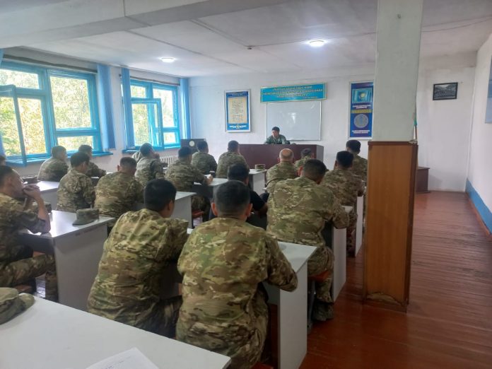 Жиын барысында сарбаздар мен офицерлер Мемлекеттік Әнұранды бірге орындап, рәміздерге құрмет білдірді. Сондай-ақ, шара барысында жас әскери қызметшілерге патриоттық бағыттағы бейнероликтер көрсетіліп, сұрақ-жауап түрінде зияткерлік бөлім ұйымдастырылды.