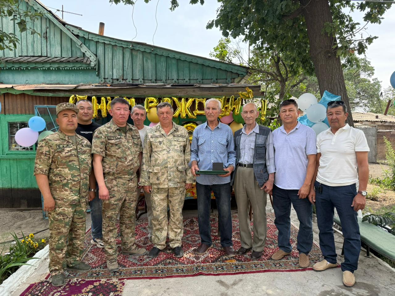Басқарма бастығы полковник Берік Бұзаушиевтің бастамасымен, шекара басқармасының ардагері, ұзақ жылдар бойы әскери салада табанды еңбек еткен аға прапорщик Георгий Полусмаков 90 жасқа толуымен салтанатты түрде құттықтады.