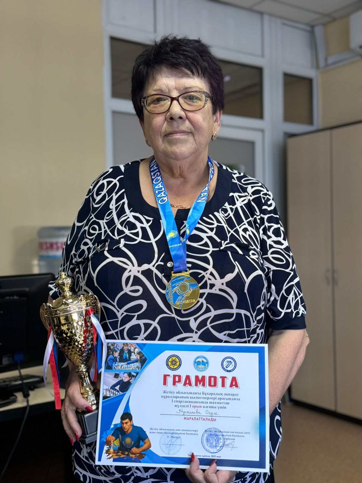 Осы спартакиаданың шахмат ойыны да өте тартысты өтті. «Талдықорған» газетінің қызметкері Сәуле Мускенова қарсыластарын шақ келтірмеді. Осылайша, ол шахматтан үздік ойыншы атанды. Сәуле Рамазанқызына арнайы кубок пен грамота табысталды.