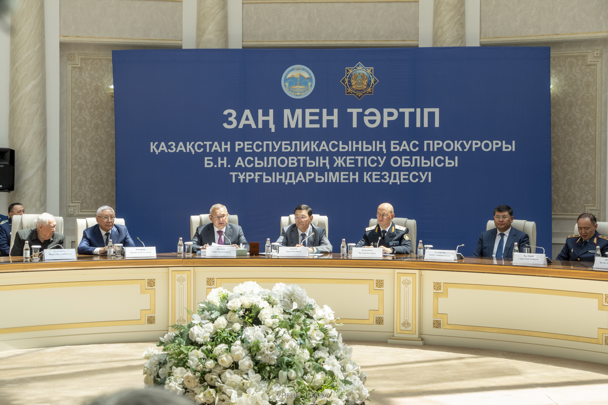 Бүгін ҚР Бас прокуроры Берік Асылов Талдықорғандағы Салтанат сарайында өңір тұрғындарымен және құқық қорғау органдары өкілдерімен кездесу өткізді. Кездесуге қоғам қайраткерлері, үкіметтік емес ұйым мүшелері, белсенді жастар да қатысты. Жиынды Жетісу облысының әкімі Бейбіт Исабаев жүргізді, — деп хабарлайды Жетісу облысы әкімінің баспасөз қызметі.