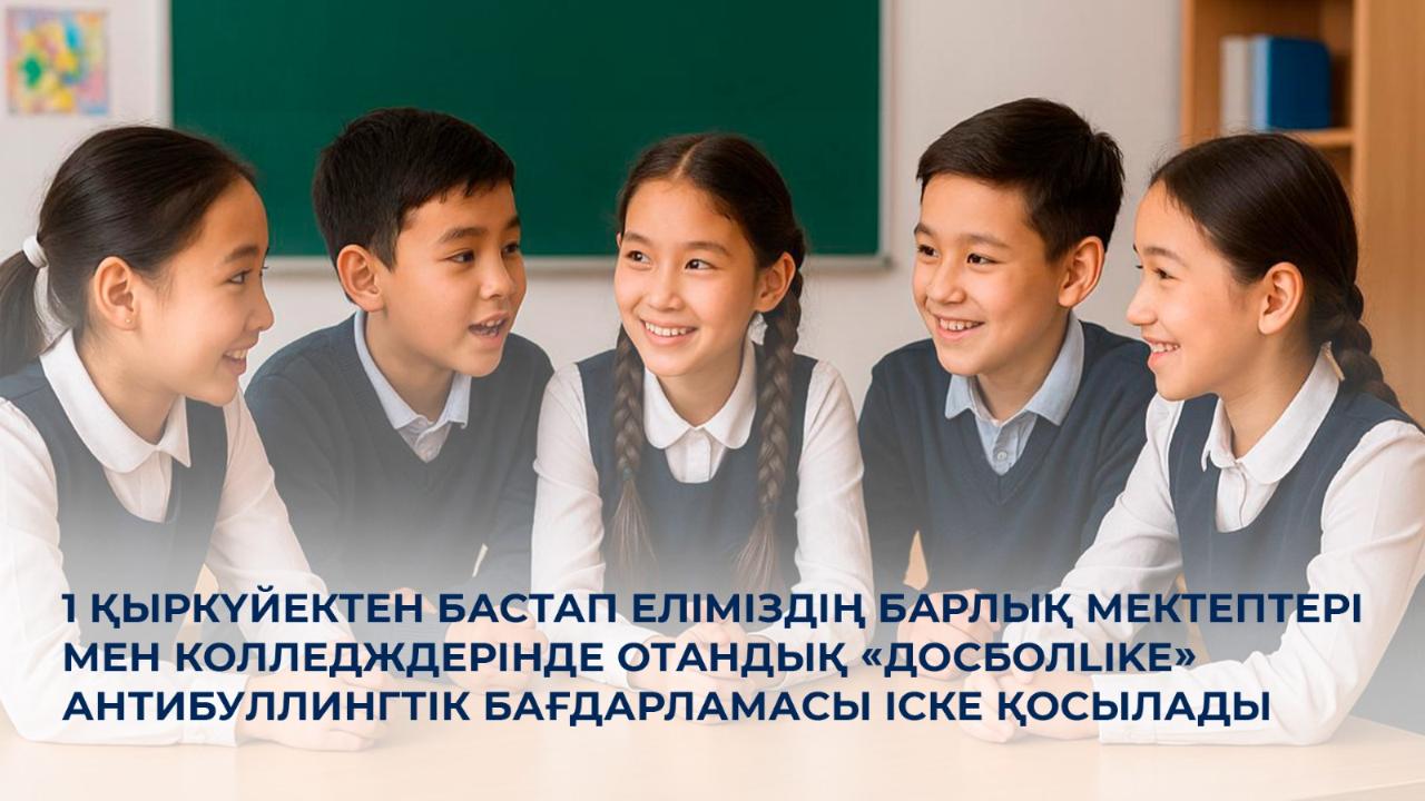 Жаңа оқу жылынан бастап Қазақстанда алғаш рет барлық мектептер мен колледждерде балалар мен жасөспірімдер арасындағы буллинг оқиғаларын азайтуға, білім беру ұйымдарында қауіпсіз, қолдаушы және өзара құрметке негізделген орта қалыптастыруға бағытталған отандық «ДосболLIKE» профилактикалық бағдарламасы енгізіледі.