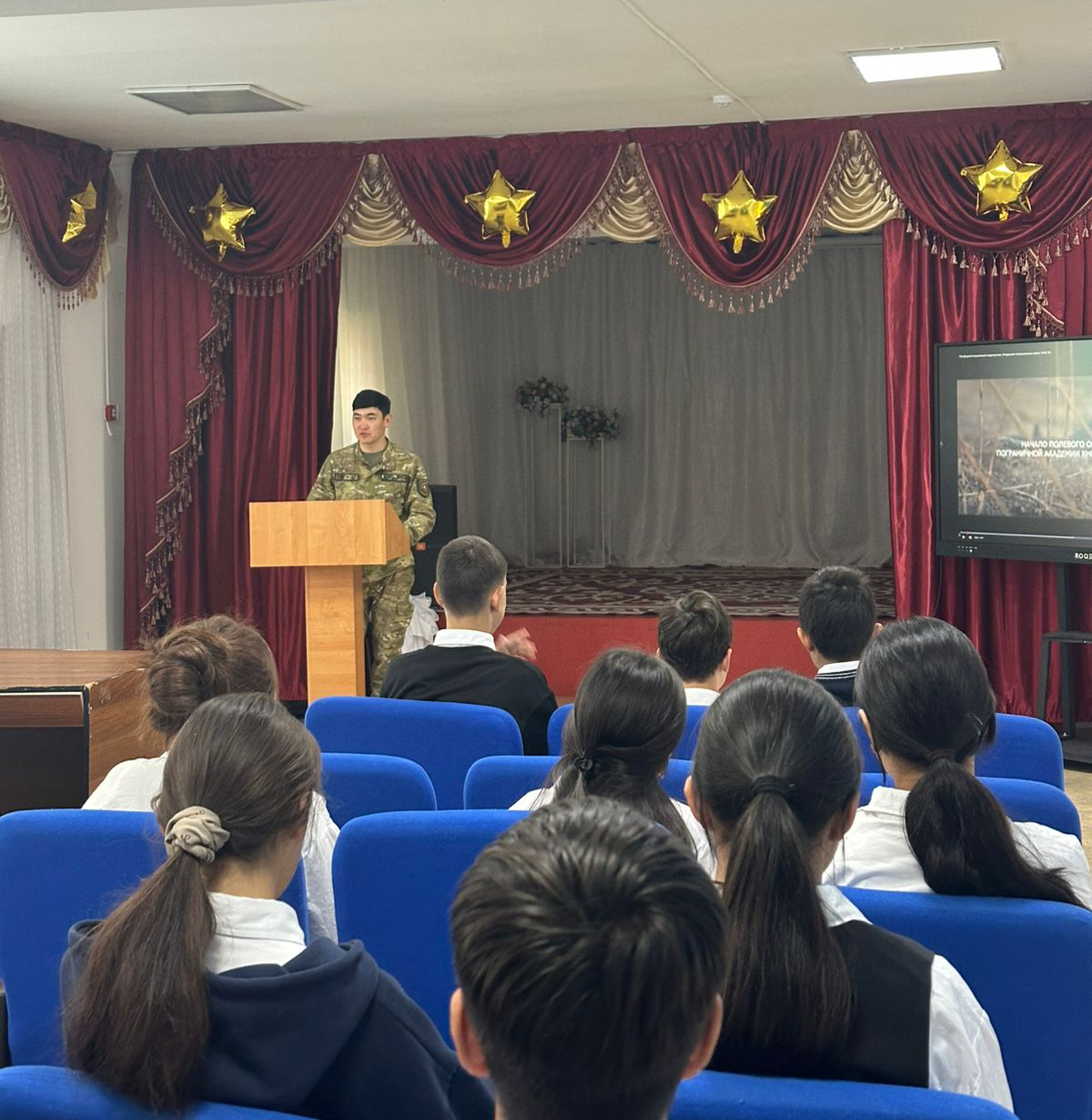 Іс-шара барысында оқушыларға әскери мамандықтардың маңызы мен қабылдау тәртібі жөнінде жан-жақты ақпарат берілді.