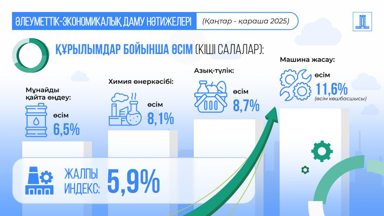 ҚР ҰЭМ деректері бойынша, басты көрсеткіш – ЖІӨ-нің өсімі, ол 6,4%-ға жеткен.