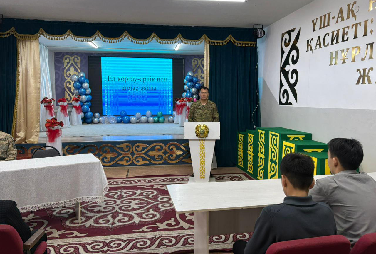 ҚР ҰҚК Шекара қызметі Жетісу облысы бойынша департаментіне қарасты Алакөл ауданы бойынша шекара басқармасының ұйымдастыруымен Үшарал қаласындағы Абай атындағы орта мектепте 8–11 сынып оқушыларына арналған «Ел қорғау – ерлік пен намыс жолы» тақырыбында тағылымды сабақ өткізілді.