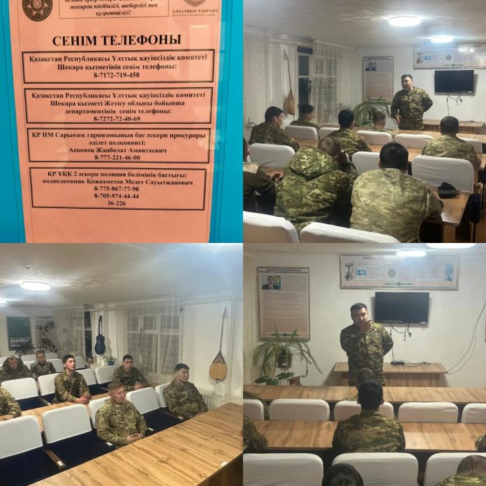ҚР ҰҚК Шекара қызметі Жетісу облысы бойынша департаментінің Панфилов ауданы бойынша шекара басқармасына қарасты оқу-жаттығу үйрету кавалериялық тобының жеке құрамымен жағымсыз іс-әрекеттердің алдын алу мақсатында тәрбие сағаты өткізілді.