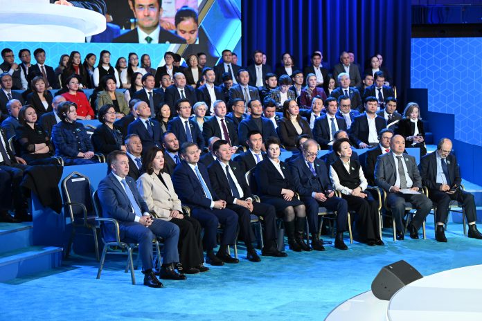 Сонымен қатар мемлекет институционалдық өзгерістер жолында маңызды кезеңнен өткені атап өтілді: «Күшті Президент – ықпалды Парламент – есеп беретін Үкімет» формуласы нығаюда, Конституциялық Сот жұмыс істеуде, заңсыз шығарылған активтер мемлекетке қайтарылуда, ұлттық ресурстарды әділ бөлу қағидаты күшейтілуде. Бұл барлық шешім әділдік, теңдік және болашақ ұрпақ алдындағы жауапкершілік құндылықтарына негізделді.