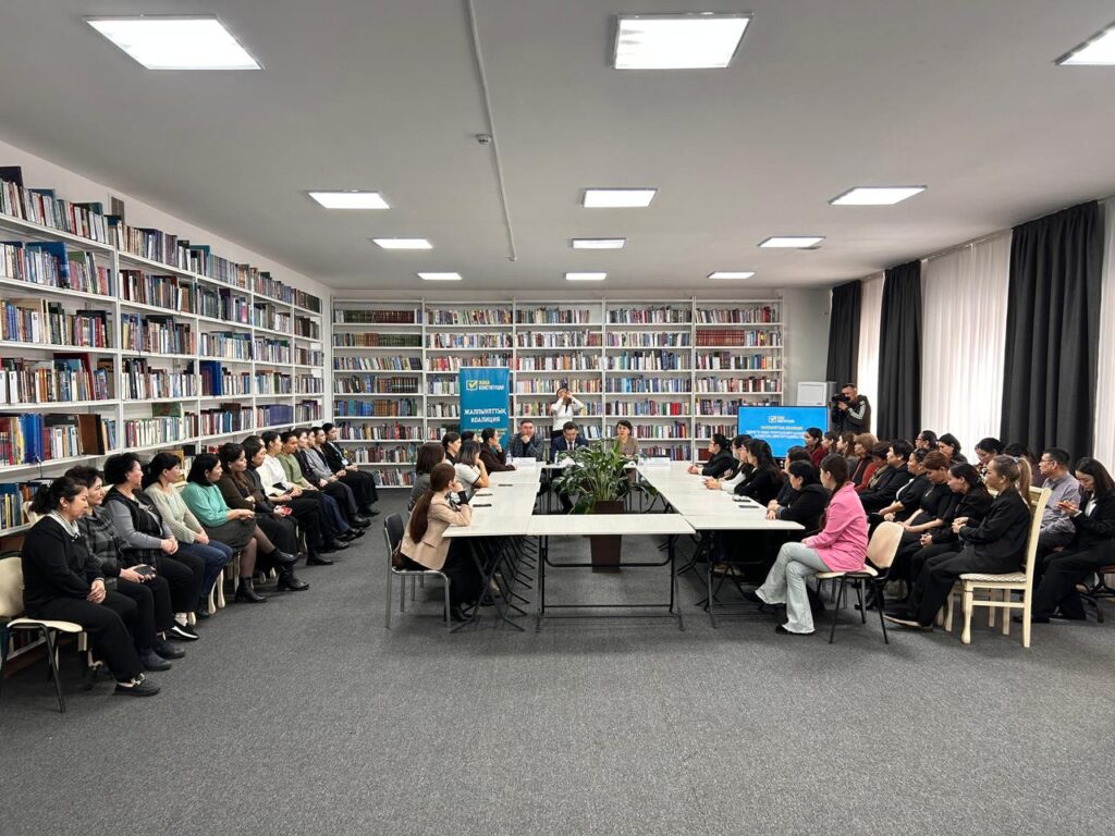 «Әділетті және Прогрессивті Қазақстанның Халықтық Конституциясы үшін!» Жалпыұлттық коалиция мүшелері Болат Керімбек, Гүлнар Тойлыбаева мен Арыстанғали Арын С. Сейфуллин атындағы орталық кітапханасында кітапханашылармен, ұстаздармен кездесіп, референдумның ел болашағы үшін маңыздылығы, азаматтық жауапкершілік, құқықтық сауаттылық және белсенділік мәселелерін таразылады.