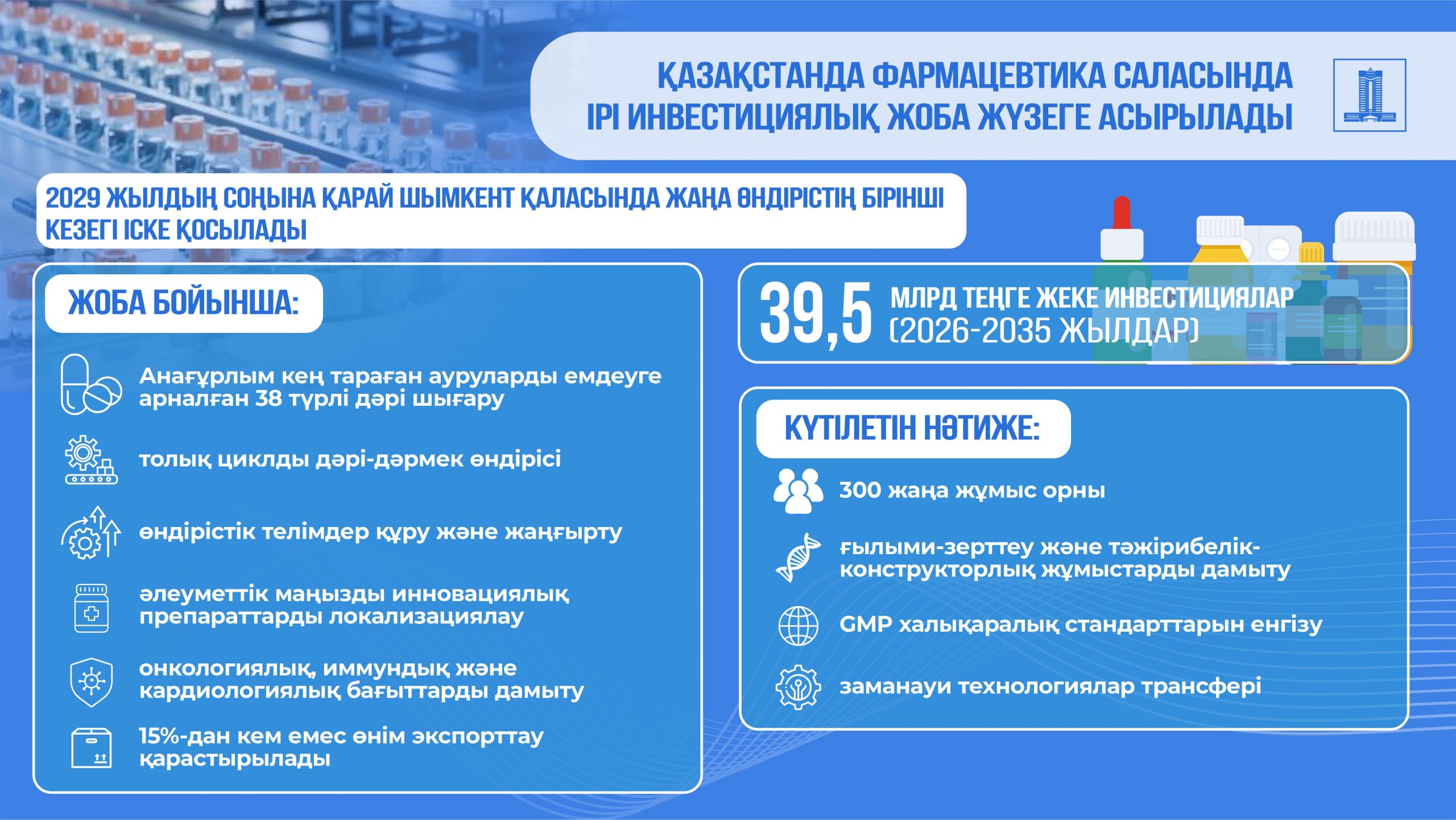 Жоба қазақстандық тауар өндірушілердің үлесін арттыруға, елдің дәрілік қауіпсіздігін нығайтуға және инвестицияларды тартуға бағытталған.