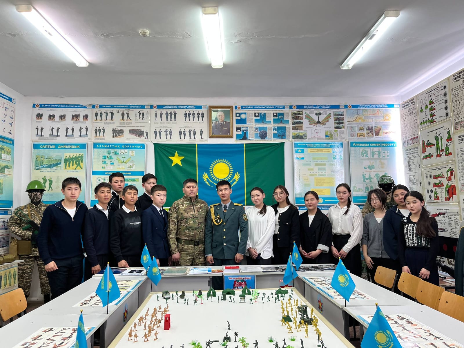 Кездесу барысында курсант оқушыларға әскери қызметтің маңыздылығы туралы айтып, жоғары әскери оқу орнына түсу тәртібі мен өз тәжірибесімен бөлісті. Сонымен қатар жастардың сұрақтарына жауап беріп, Отан қорғауға деген қызығушылықтарын арттыруға бағытталған әңгіме өрбіді.