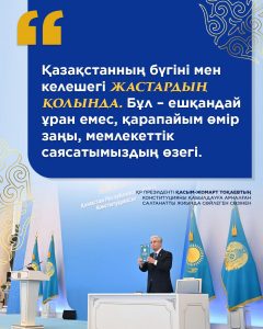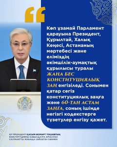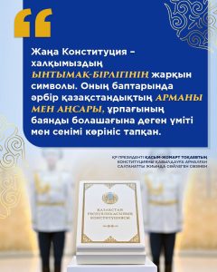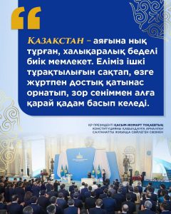 ЖаңалықтарҚоғамдық сананы жаңғырту ҚР Президенті Қ.Тоқаевтың Конституцияны қабылдауға арналған салтанатты жиында сөйлеген сөзінен арқылы Назерке Әділбекова - 17.03.2026 4 Facebook-те бөлісіңіз Твиттерде твит
