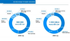2026 жылғы жоба құны – 12,5 млрд.тг құрайды. Бұл қаражат 464,4 км әуе желілерін реконструкциялауға, 9,7 км кабельді желіні, 2 бірлік қосалқы станцияны жаңғыртуға жұмсалмақ. 2025 жылғы 01 қыркүйектен бекітілген тарифтермен және 2026 жылғы 01 мамырдан бастап іске асырылатын жоба бойынша электр энергиясының тарифтерін салыстырмалы түрде қарайтын болсақ, тұтынушылар тобы: жеке тұлғалар (тұрмыстық тұтынушылар) үшін 2025 ж. 1 қыркүйектен 31,09 болса, 2026 жылдың 1 мамырынан 32,22; заңды тұлғалар 2025 ж. 1 қыркүйектен 47,53 болса, 2026 жылдың 1 мамырынан 49,27; бюджеттік ұйымдар 2025 ж. 1 қыркүйектен 86,43 болса, 2026 жылдың 1 мамырынан 89,59; 4-ші тұтынушылар тобына кіретін (ӘМАТ заңды тұлғалар; АЭ және ИА тұтынушылар; ҚР Президентінің ІБ ВҚҰ және ведомстволары) 2025 ж. 1 қыркүйектен 42,02 болса, 2026 жылдың 1 мамырынан 45,21 тг төлейді деп жоспарланған.